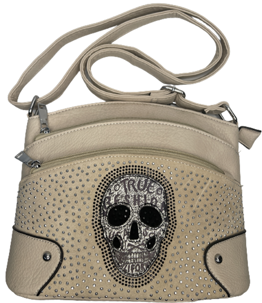Olkalaukku vaalea pääkallo hyvät taskut Laukku niittejä ja isot vetskarit 28x20