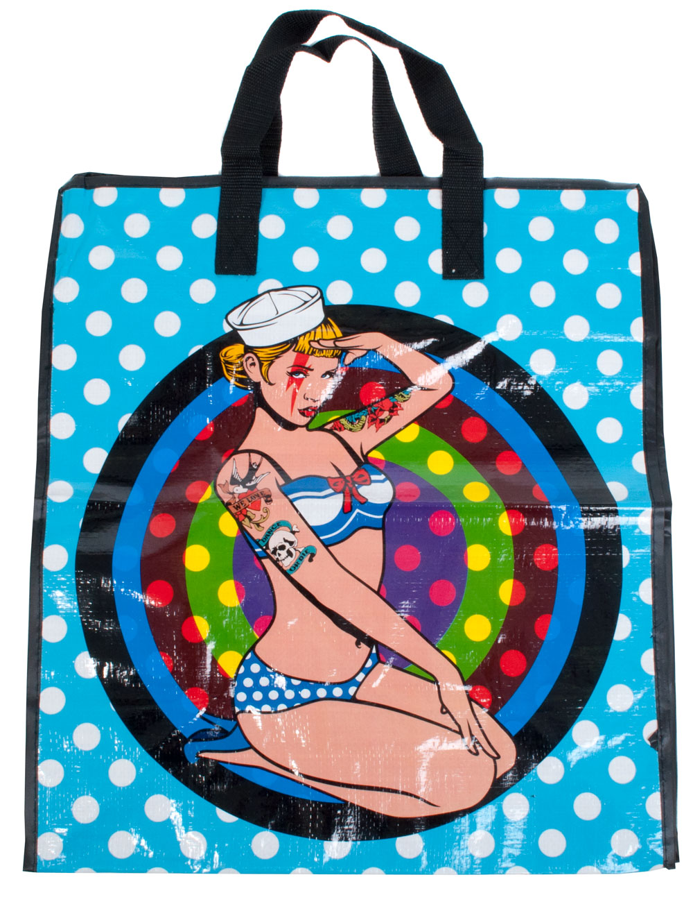 Ostoskassi, Sailor girl. Iso kestävä ostoskassi vetoketjulla. Kassin koko pituus 43 cm, korkeus 51 cm ja leveys 24 cm.