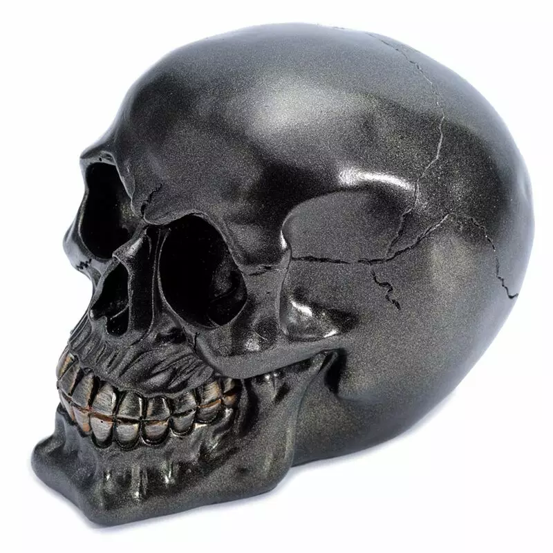 Pääkallo Kultahammas Metallinhohto, halloween. Kallon mitat 10 x 12 x 14,5 cm. Materiaali polyresiini.