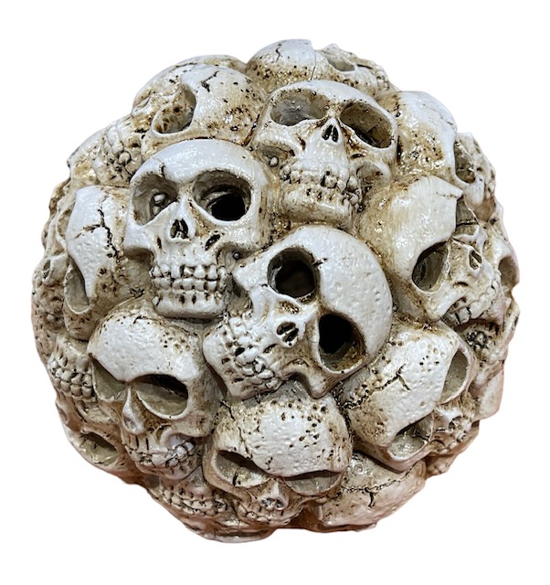Pääkallo Led-valo, halloween. Toimii kahdella LR44-paristolla (sisältyy pakkaukseen). Pallon halkaisija n. 10 cm.