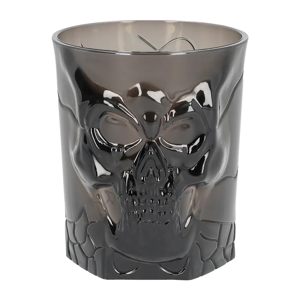 Pääkallo muki Smoke 400 ml, Halloween. Savunharmaa, muovinen tukeva muki, jossa tyylikäs kohokuvioitu pääkallo.