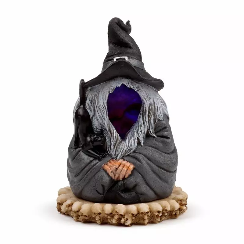 Patsas Noita ja Musta Kissa, LED. Tyylikäs valaistu patsas, jossa väriä vaihtava valo kajastaa kasvottoman noidan uumenista.