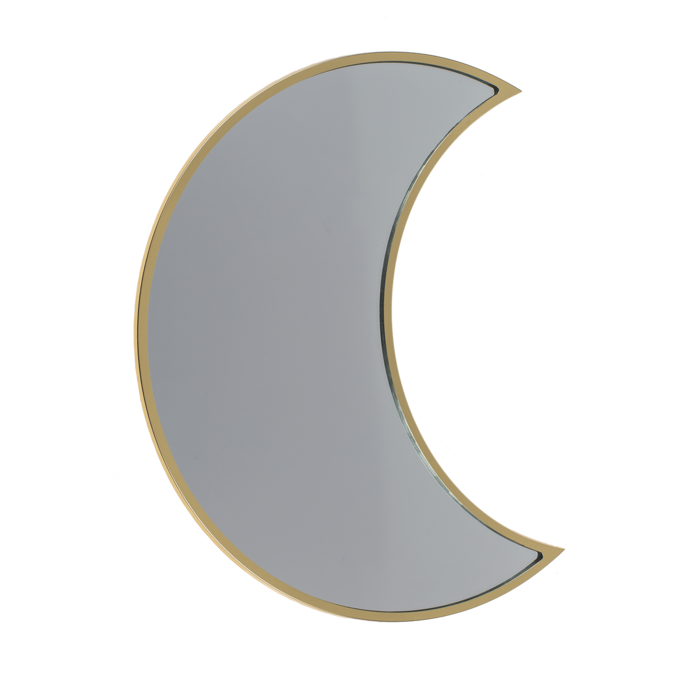 Peili, Kuunsirppi. Metallikehyksinen, kullanvärinen peili. Peilin takana metallinen kiinnitysripustin. Mitat n.25 x 11 x 6 cm.