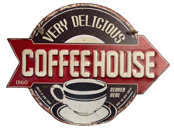 Peltikyltti Coffee House 30x23cm Kohokuvio peltikyltti pyöreä nuoli