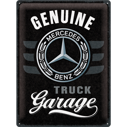 Peltikyltti Daimler Truck 30 x 40cm. Mercedes Benz Vahvaa teräspeltiä 3D-kohokuviointi kulmissa reiät kiinnitystä varten koko 30 x 40 cm paino 430 g