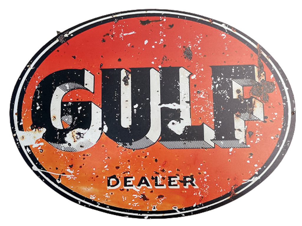Peltikyltti GULF dealer retro 38x28 cm reijät sivuissa