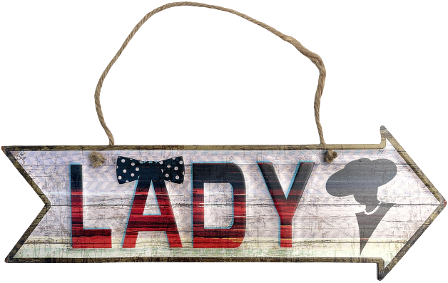 Peltikyltti LADY oikealle osoittava nuolikyltti. Sis narun.