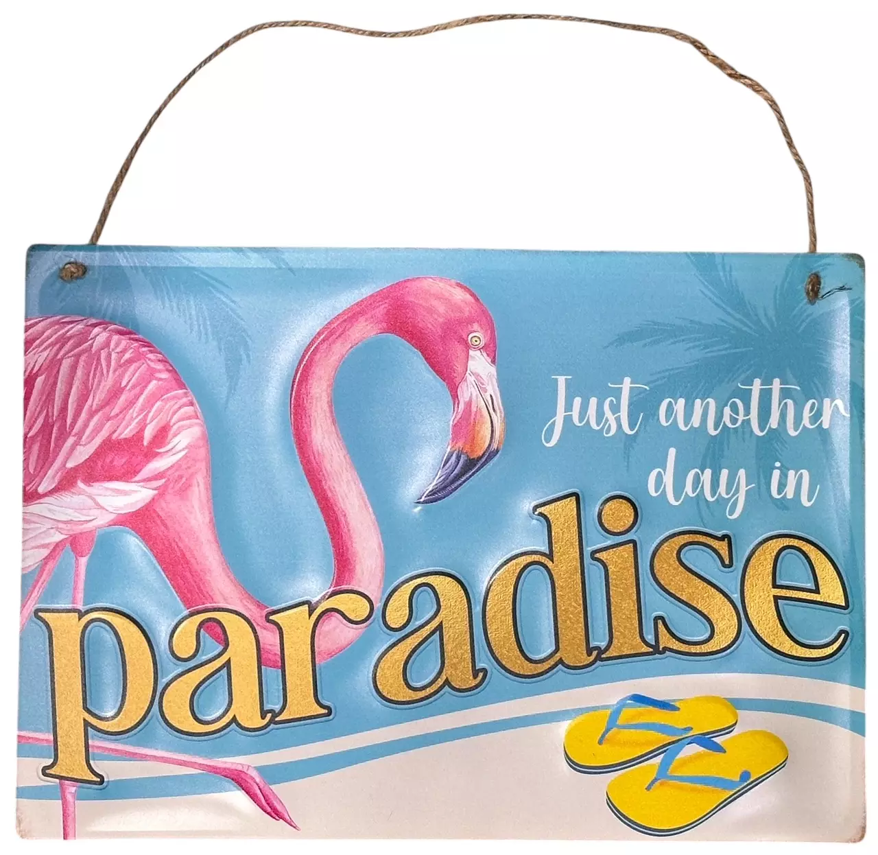 Peltikyltti Paradise, 3D. Kyltin mitat 40 x 28 cm. Mukana ripustusnaru.
