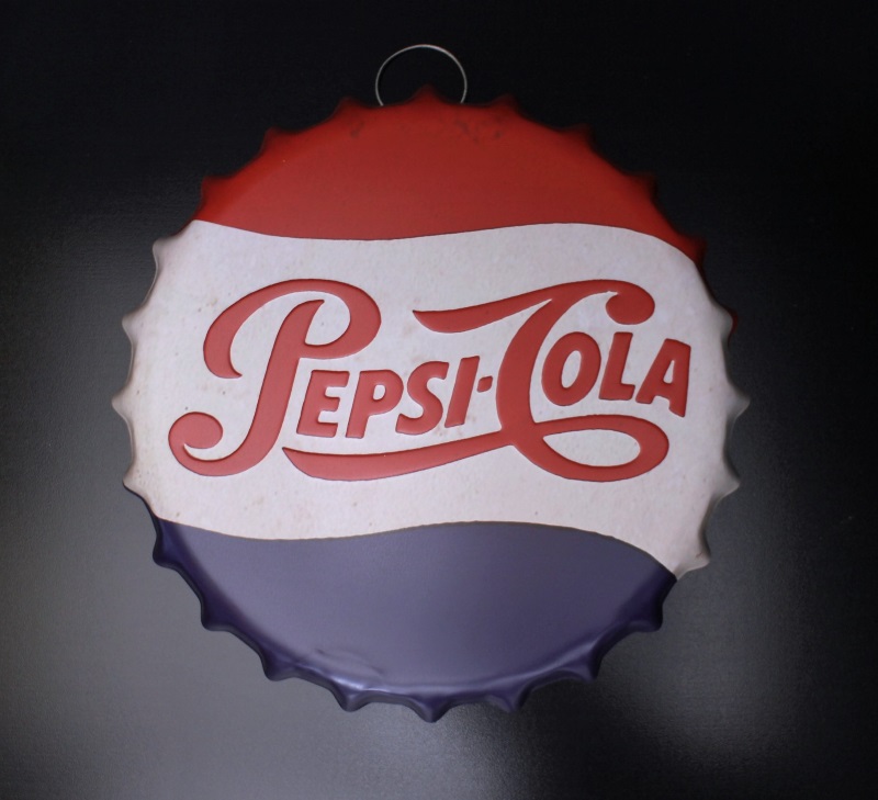 Pepsi-Cola-korkki. Peltinen korkinmuotoinen seinäkoriste niille, jotka valitsevat Pepsi-Colan ! Korkin halkaisija 35 cm, syvyys 4 cm ja paino n. 330 g.