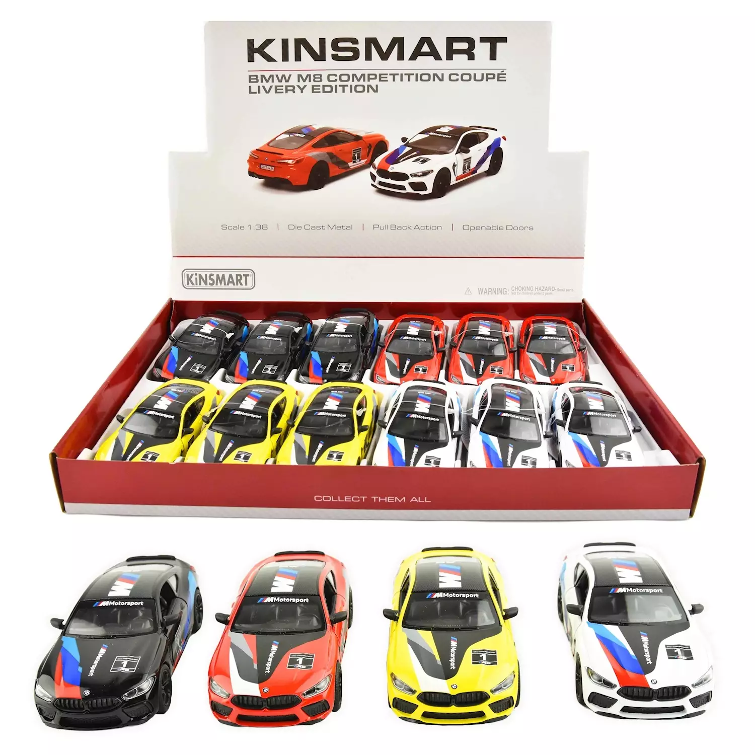 Pienoismalli BMW M8 Coupe 1:38, 13 cm. Autossa on aukeavat ovet ja Pull Back-toiminto (vedä taaksepäin ja auton saa liikkeelle). Saatavilla neljässä eri värissä, kerää koko sarja ! Ikäsuositus 3+, sisältää pieniä osia !