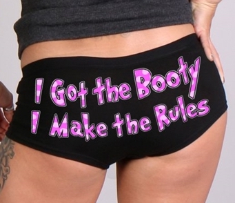 Naisten pikkuhousut. Persuksen päälle painatettu Luuranko centterit. Pikkuhousujen materiaali 90 % puuvillaa ja 10 % spandeksia.