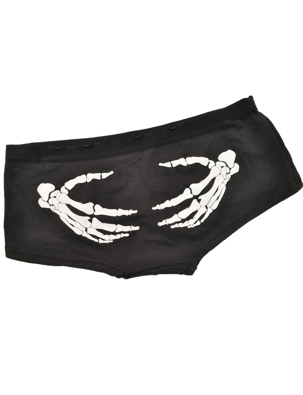Pikkuhousut, Hot Leathers, Skeleton Hand. Naisten puuvillaiset pikkuhousut,j oissa painatus takapuolella.