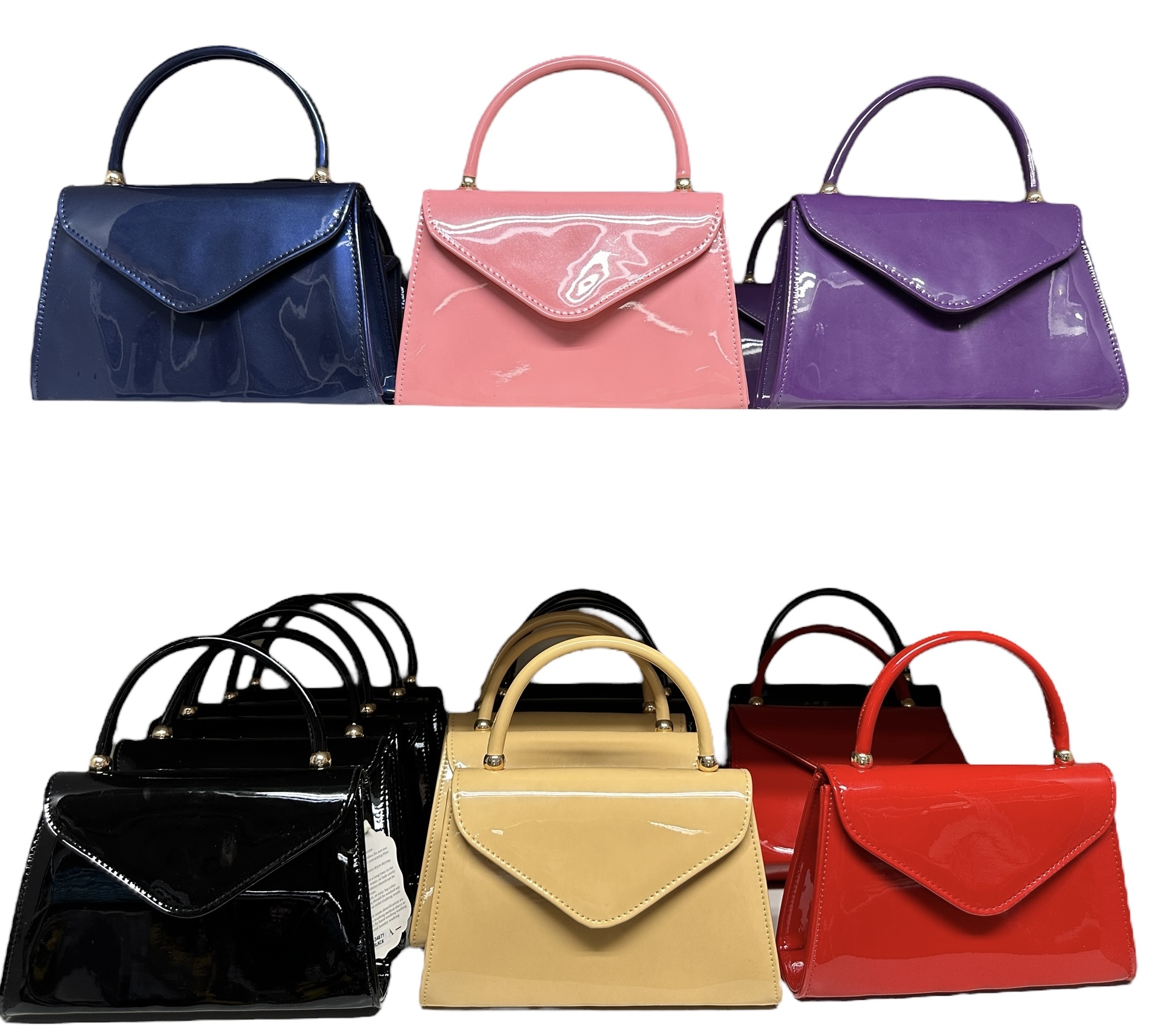 Pikkulaukku irroitettavalla ketjuhihnalla. Kiiltäväpintainen pieni käsilaukku, mitat n. 24 x 15 cm. Kuusi eri värivaihtoehtoa.