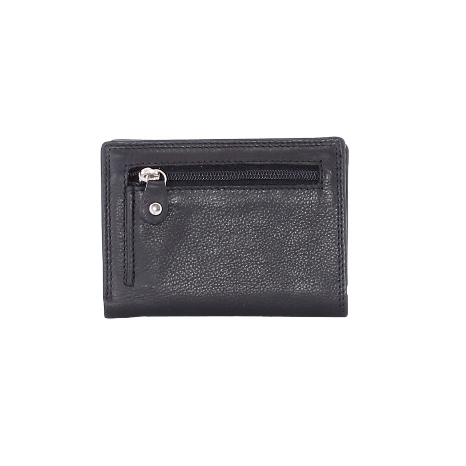 Pikkulompakko RFID, musta. Nahkainen, näppärä pikkulompakko, jossa tilaa kuudelle kortille, yksi setelitasku ja lompakon ulkopuolella vetoketjullinen kolikkotasku. Mitat lompakko suljettuna: 8 cm x 11 cm. RFID-suojaus estää korttien laittoman skannauksen ja on suojattu radioaalloilta. Kortti on suojassa kun lompakko on kiinni. Lompakossa suojakalvo on lompakon nahan sisällä.