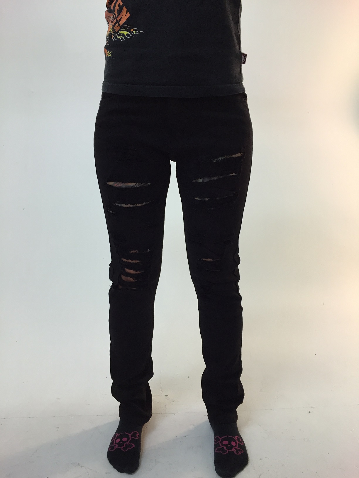 Pillifarkut, G-72, musta. Naisten harmaat pillifarkut, jossa kulutusta lahkeiden etupuolella. 5-taskumalli. Vyölenkit. Tukevaa, mutta hyvin joustavaa farkkukangasta. Mukavat päällä.