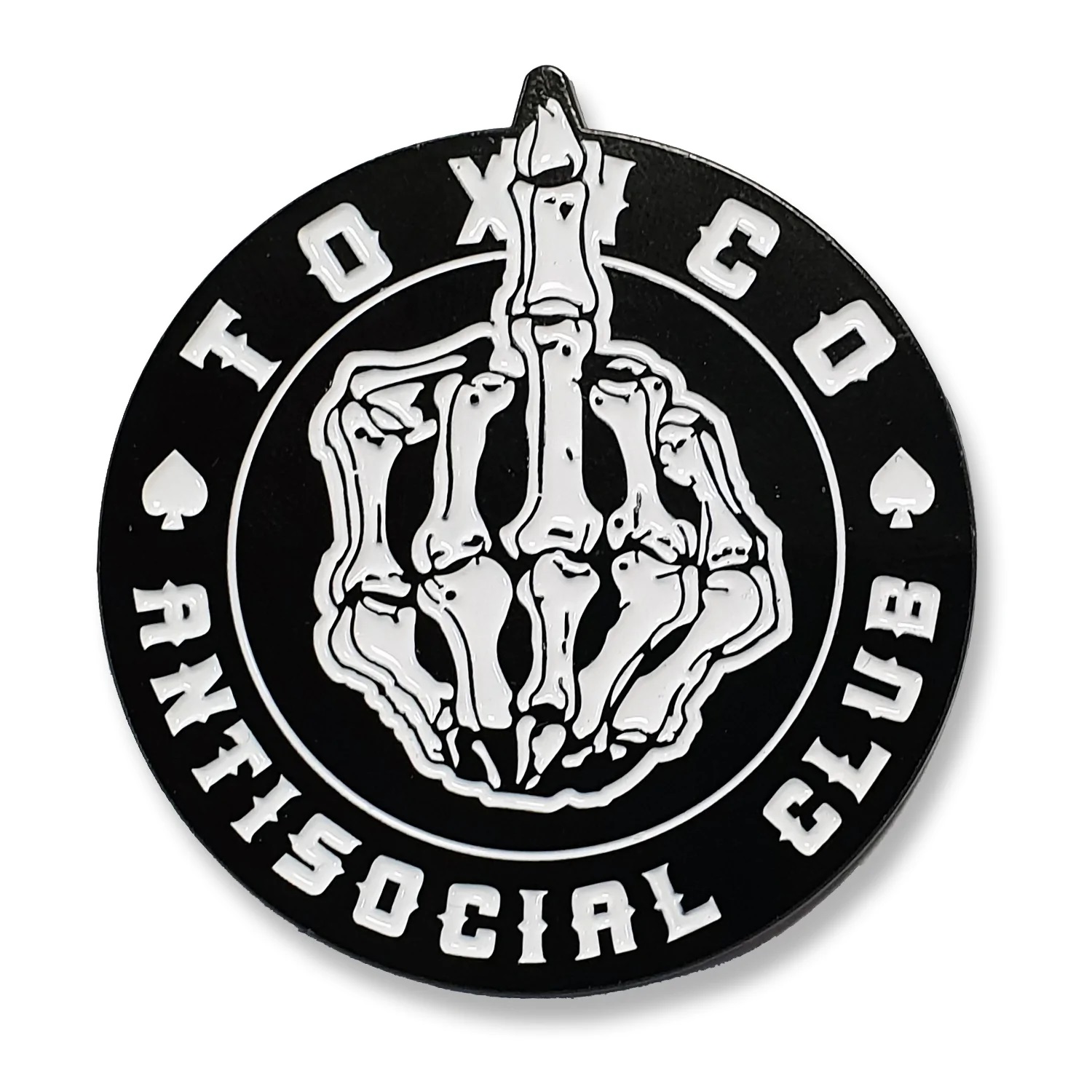 Pinssi, Anti Social Club. Emalinen pinssi kahdella lukolla, halkaisija n. 5,5 cm.