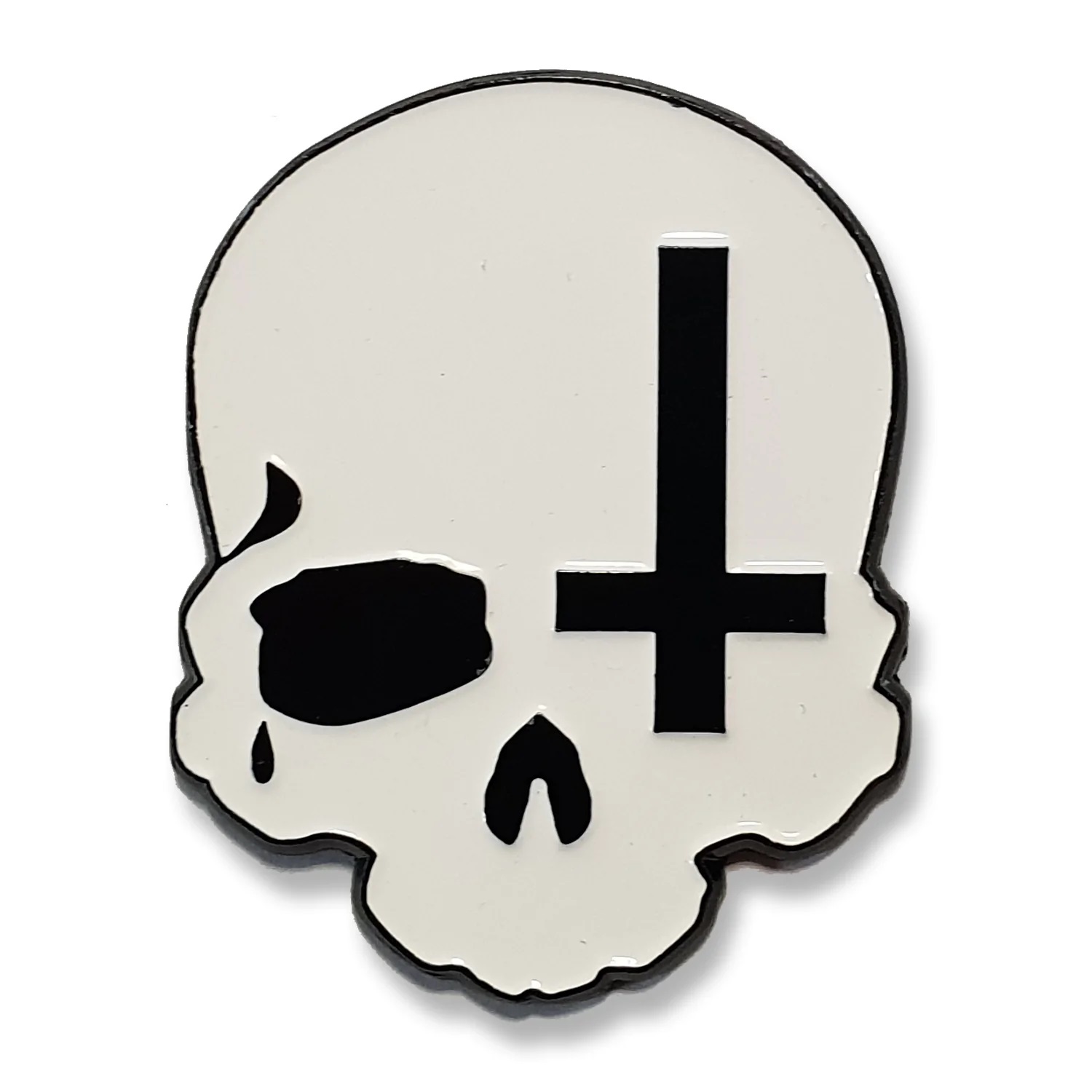 Pinssi Ristikallo, Toxico. Mustavalkoinen emalipinssi kahdella neulalla ja lukolla. Mitat n. 3,5 cm x 4,5 cm.