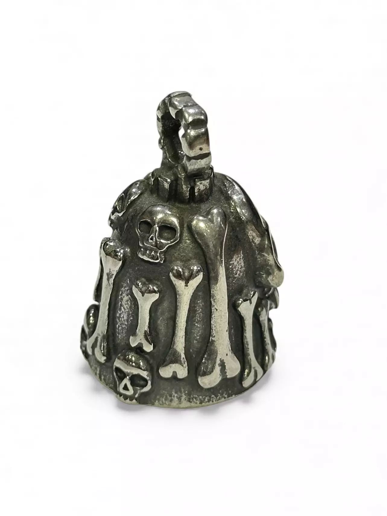 Pirunkello Bones and Skulls. Ruostumattomasta teräksestä valmistettu, onnea kantajalleen tuottava kello. Ripusta moottoripyörään suojaamaan ajotien varrella vaanivilta pahoilta hengiltä.