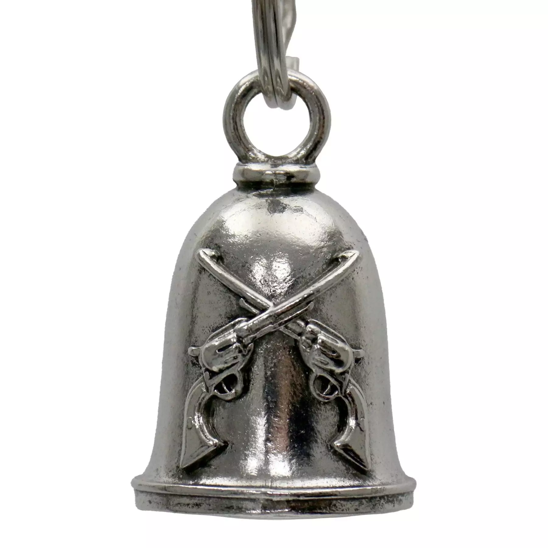 Pirunkello Crossed Pistols. Ruostumattomasta teräksestä valmistettu, onnea kantajalleen tuottava kello. Ripusta moottoripyörään suojaamaan ajotien varrella vaanivilta pahoilta hengiltä.