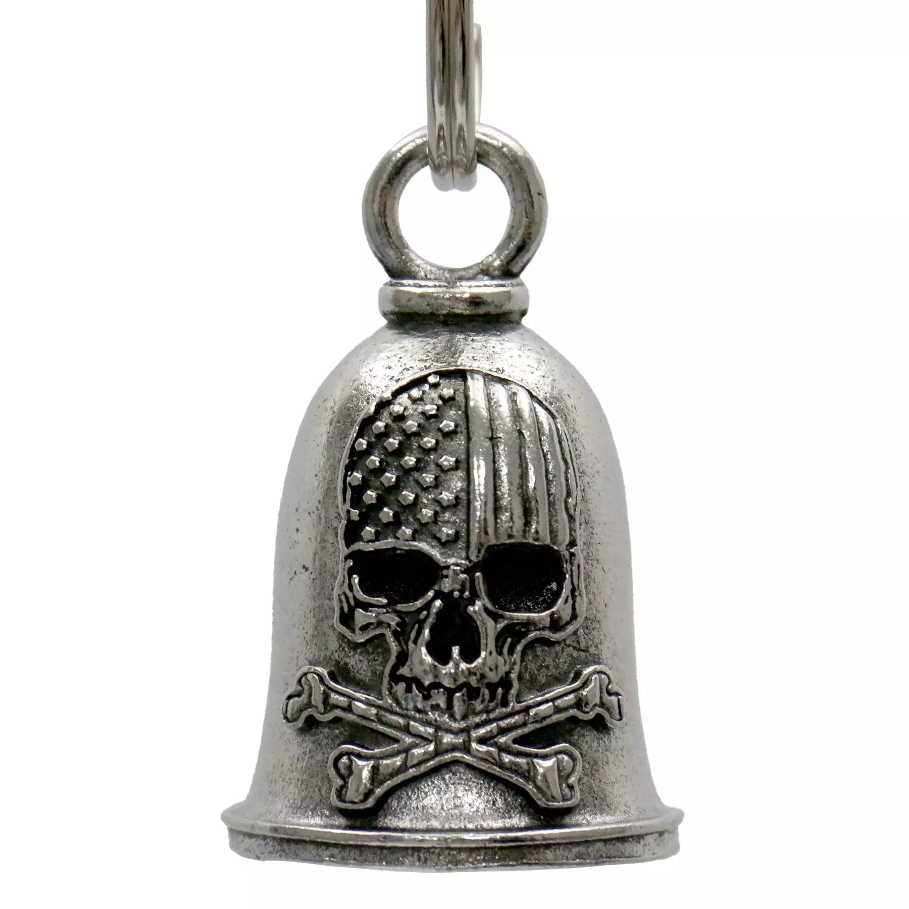 Pirunkello Flag Skull. Ruostumattomasta teräksestä valmistettu, onnea kantajalleen tuottava kello. Ripusta moottoripyörään suojaamaan ajotien varrella vaanivilta pahoilta hengiltä.