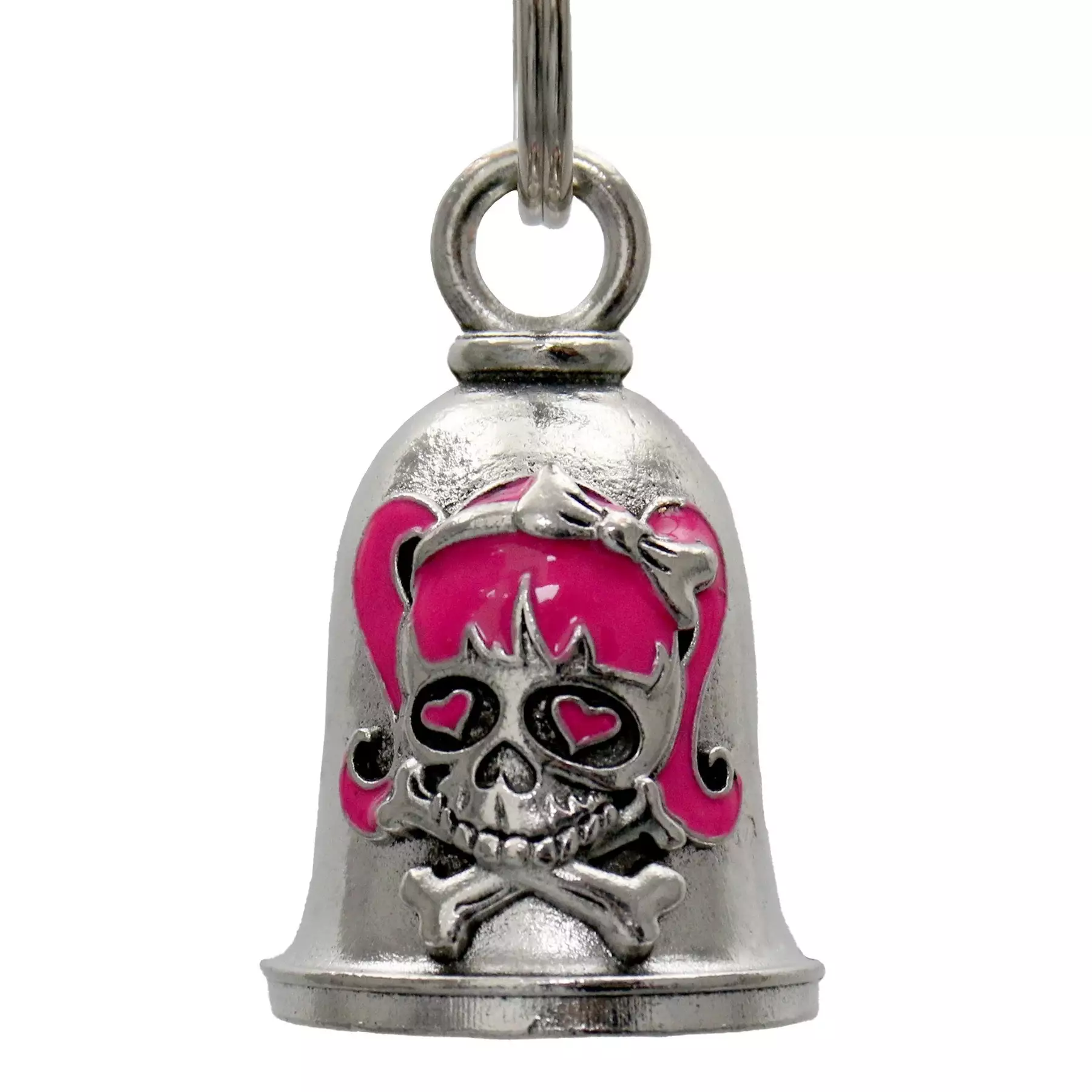 Pirunkello Girly Skull. Ruostumattomasta teräksestä valmistettu, onnea kantajalleen tuottava kello. Ripusta moottoripyörään suojaamaan ajotien varrella vaanivilta pahoilta hengiltä.