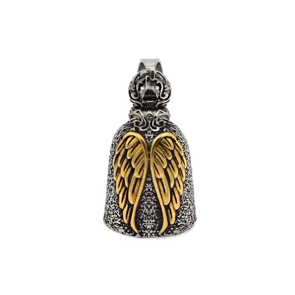 Pirunkello Golden Wings. Ruostumattomasta teräksestä valmistettu, onnea kantajalleen tuottava kello. Ripusta moottoripyörään suojaamaan ajotien varrella vaanivilta pahoilta hengiltä.