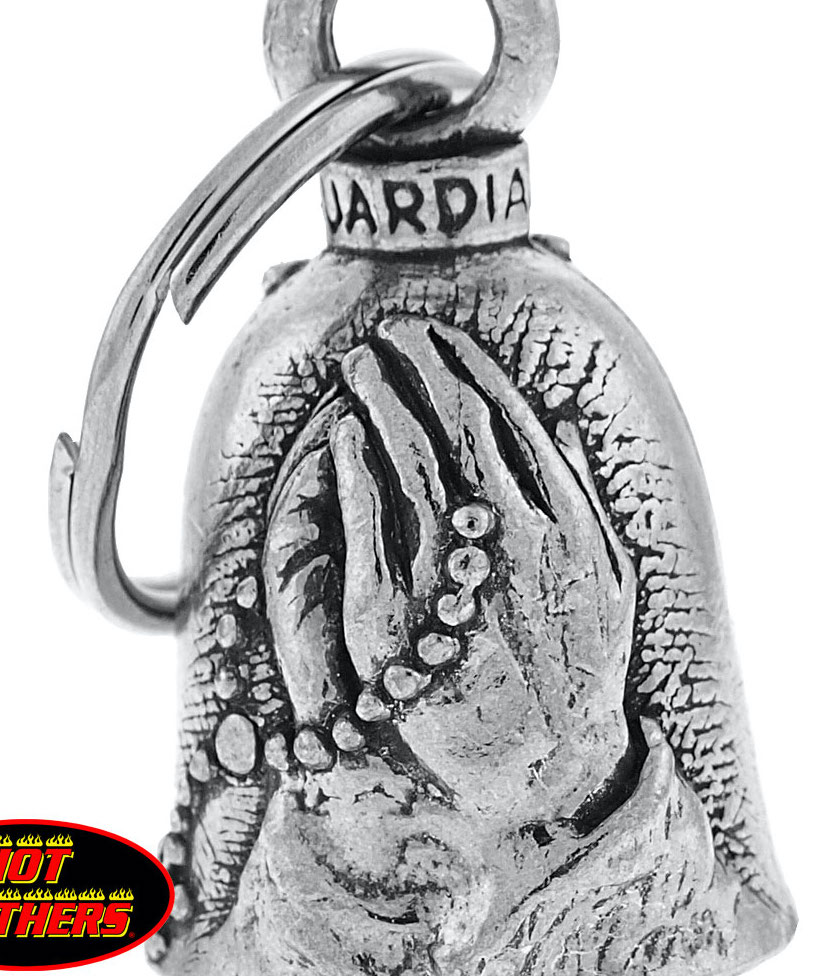 Kädet Rosary Guardian® Bell -kellon kanssa - Suojaa pyöräilijöitä pahilta tieliikenteiltä ja demoneilta! Täysin lyijytön kello, joka on valmistettu raskasta tinasta. Mukana samettinen pussi. Valmistettu USA: ssa!