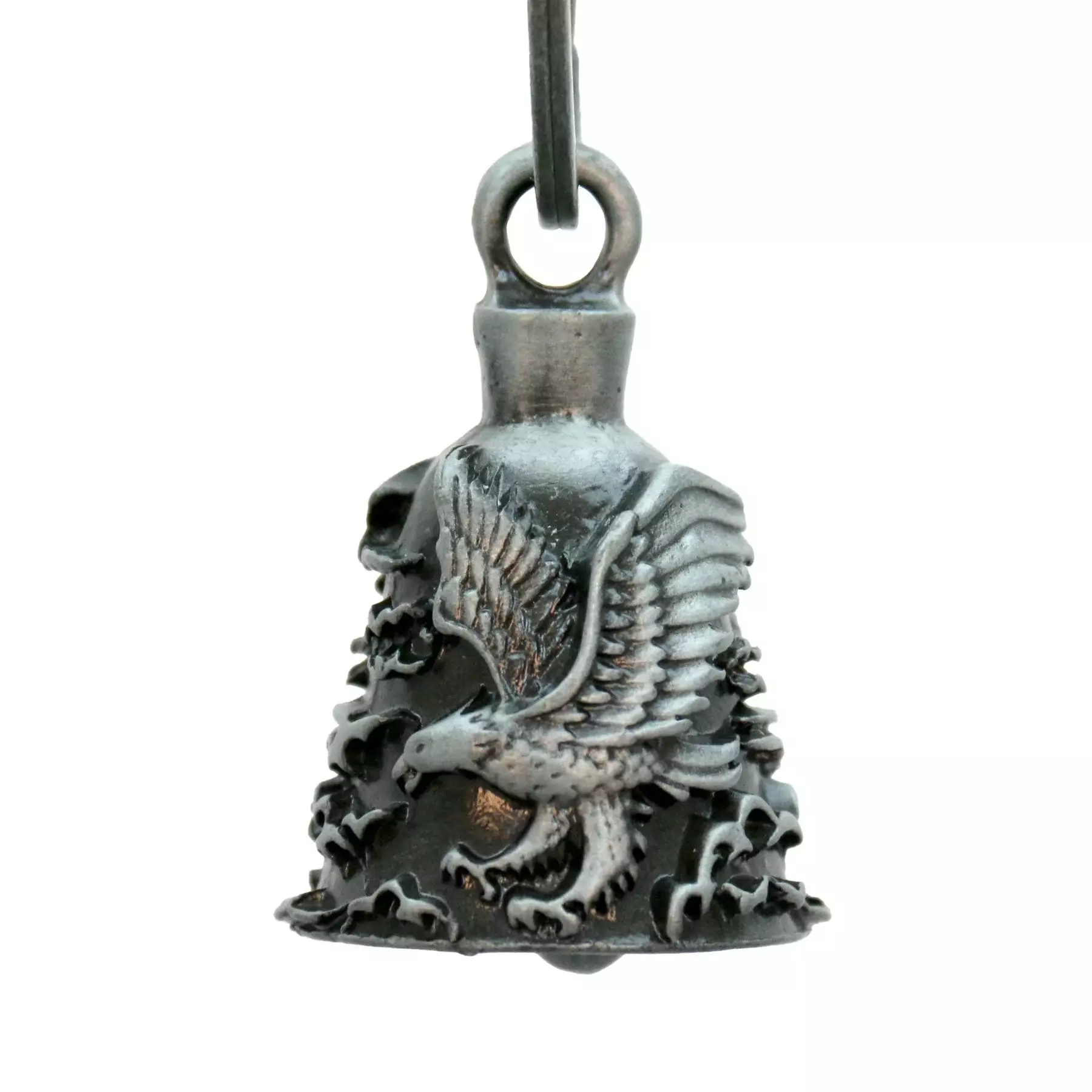 Pirunkello Soaring Eagle. Ruostumattomasta teräksestä valmistettu, onnea kantajalleen tuottava kello. Ripusta moottoripyörään suojaamaan ajotien varrella vaanivilta pahoilta hengiltä.