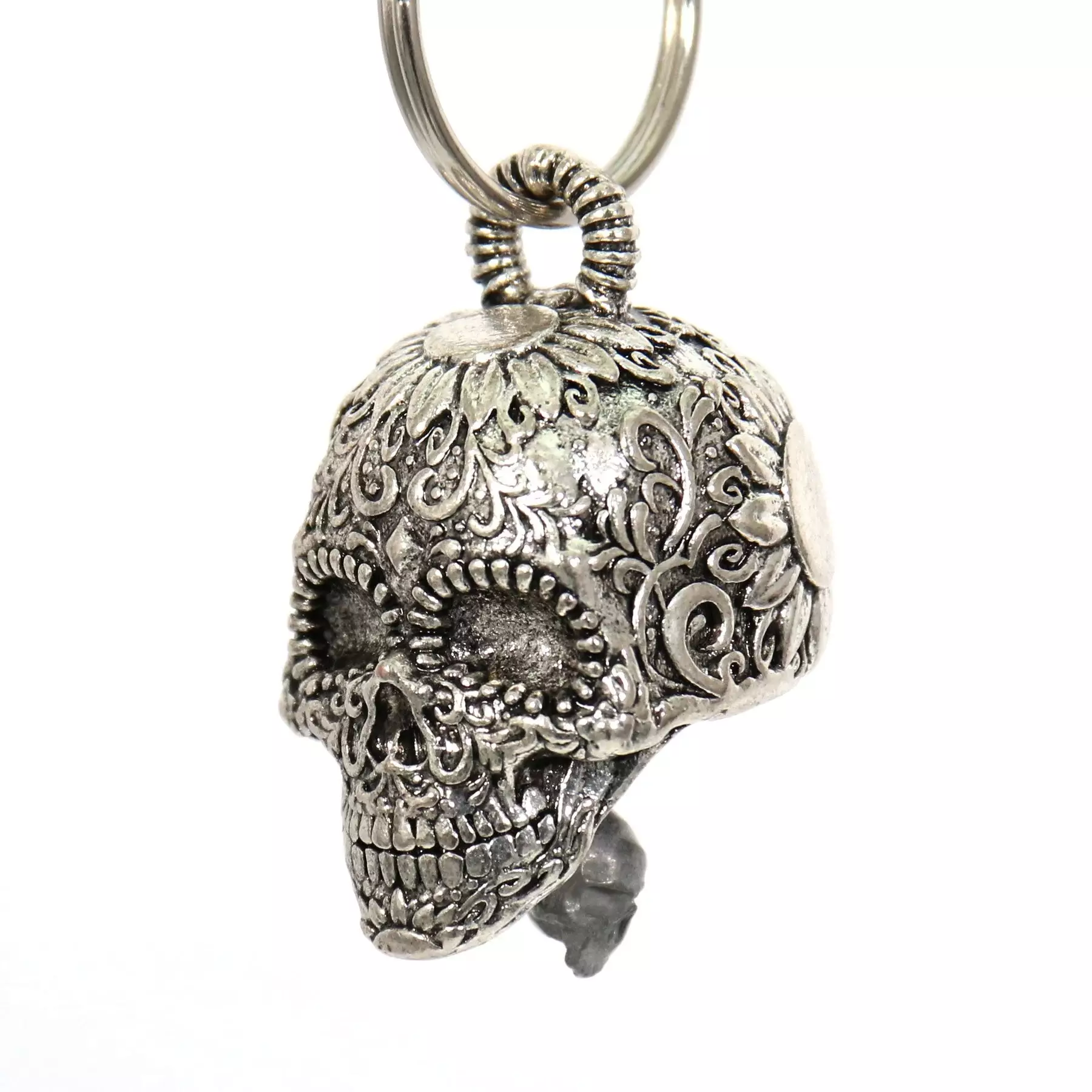 Pirunkello Sugar Skull. Ruostumattomasta teräksestä valmistettu, onnea kantajalleen tuottava kello. Ripusta moottoripyörään suojaamaan ajotien varrella vaanivilta pahoilta hengiltä.