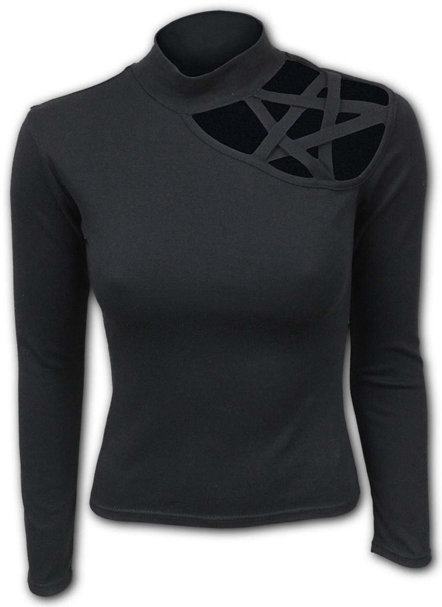 Pitkähiha Gothic Elegance, Spiral. Musta trikoopaita, tyylikkäällä Pentagrammi-yksityiskohdalla. Materiaali 100 % puuvillaa, hienopesu.