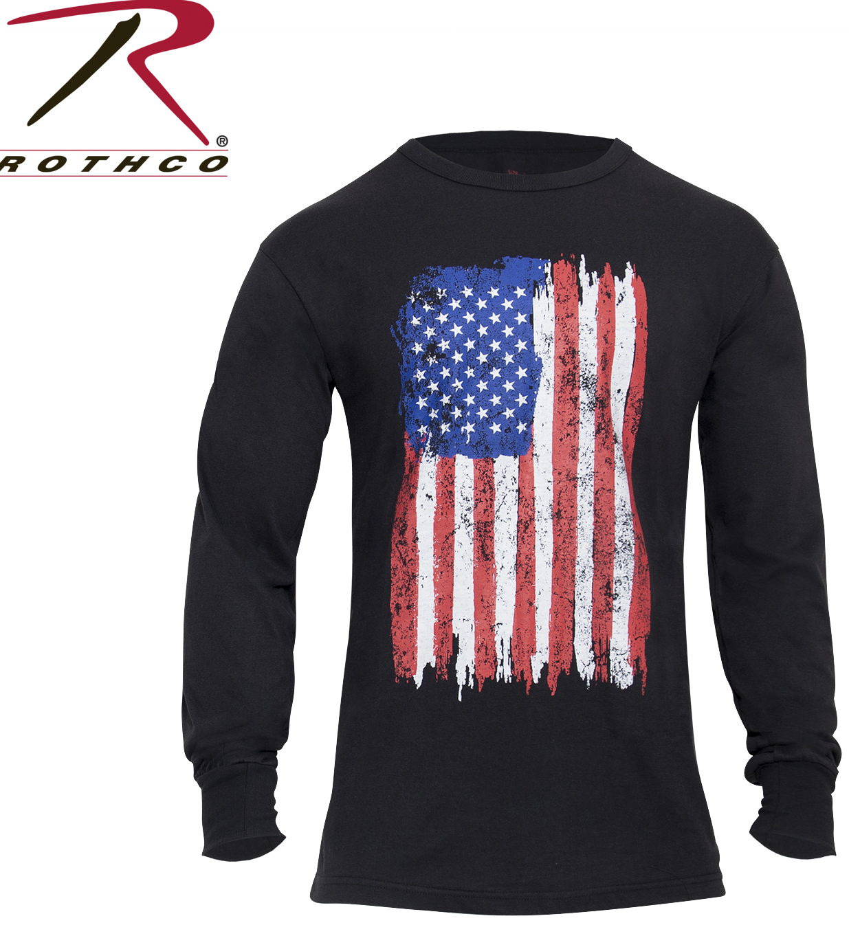 Rothco's Long Sleeve T-Shirt features a Distressed American Flag, providing a comfortable way to represent your pride.