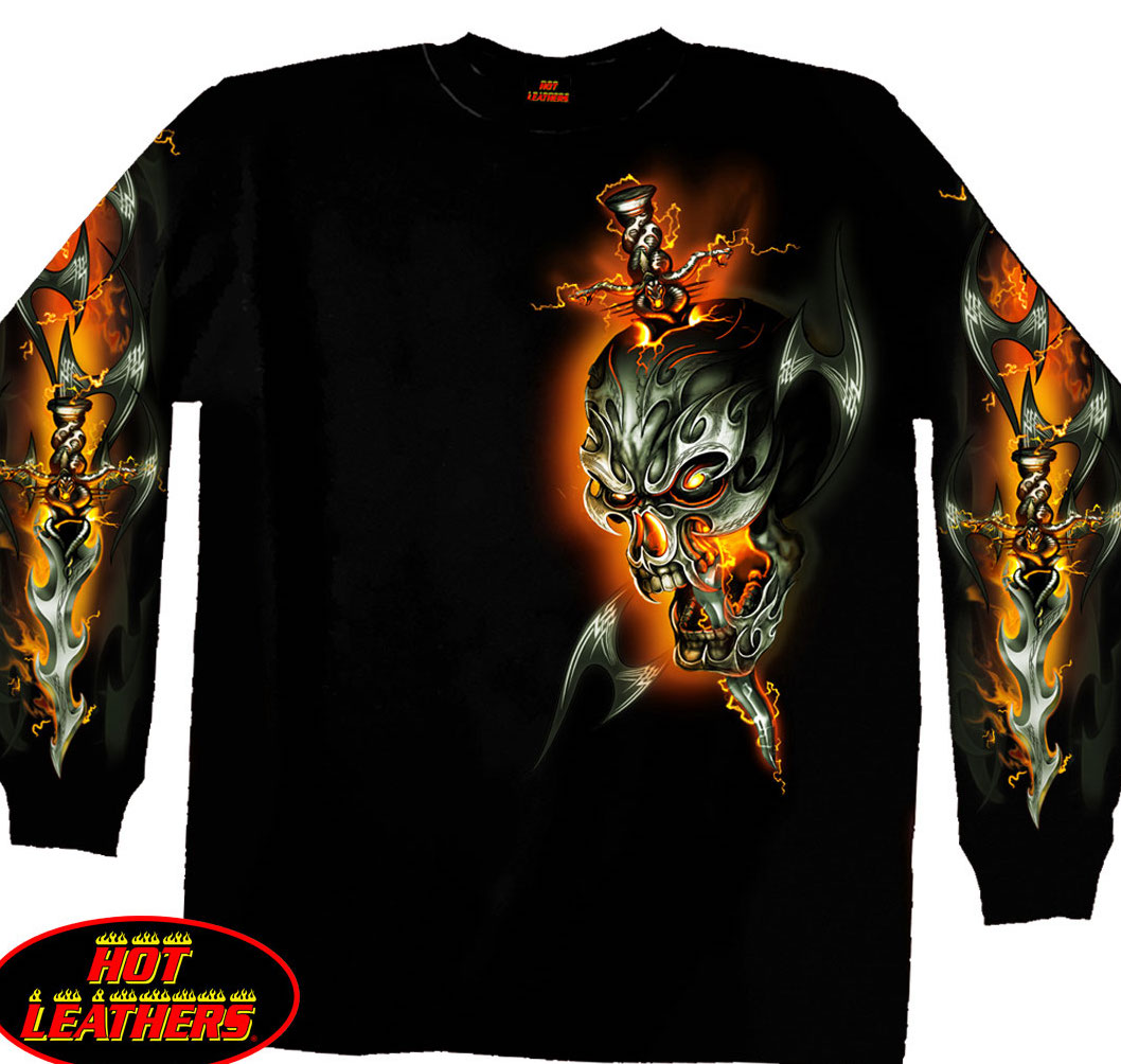 HOT LEATHERS ELECTRIC SKULL LONG SLEEVE SHIRT
