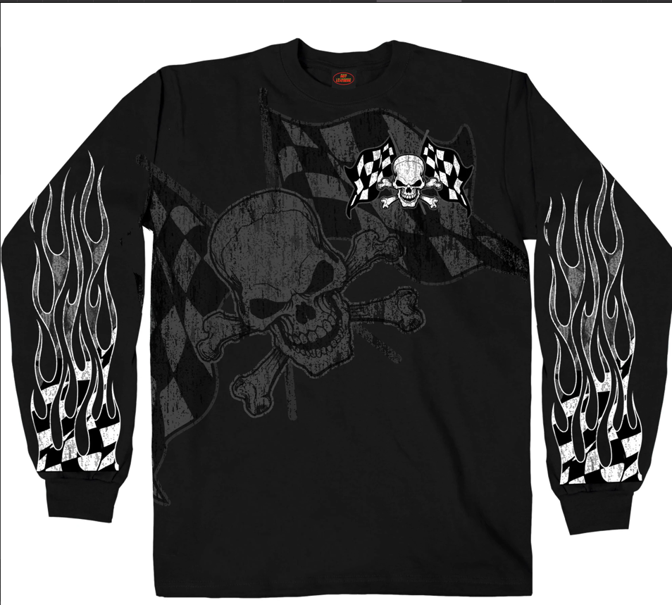 HOT LEATHERS CHECKERED FLAG SKULL LONG SLEEVE