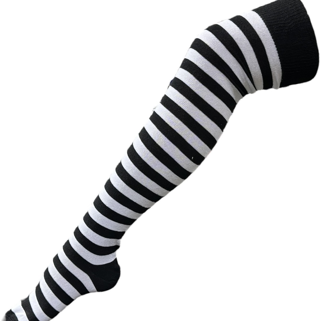Pitkät sukat 38/41 Mustavalkoraita Sukan pituus 50 cm venyttämättömänä