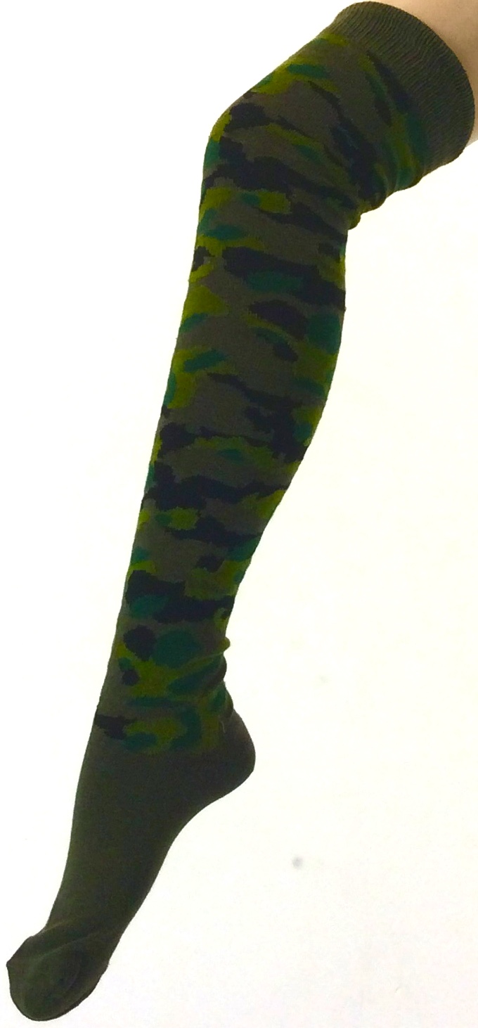 Pitkät sukat 38/41, Vihreä camo. Yli polven sukat. Väriltään vihreä maastokuvio. Koko 38/41.