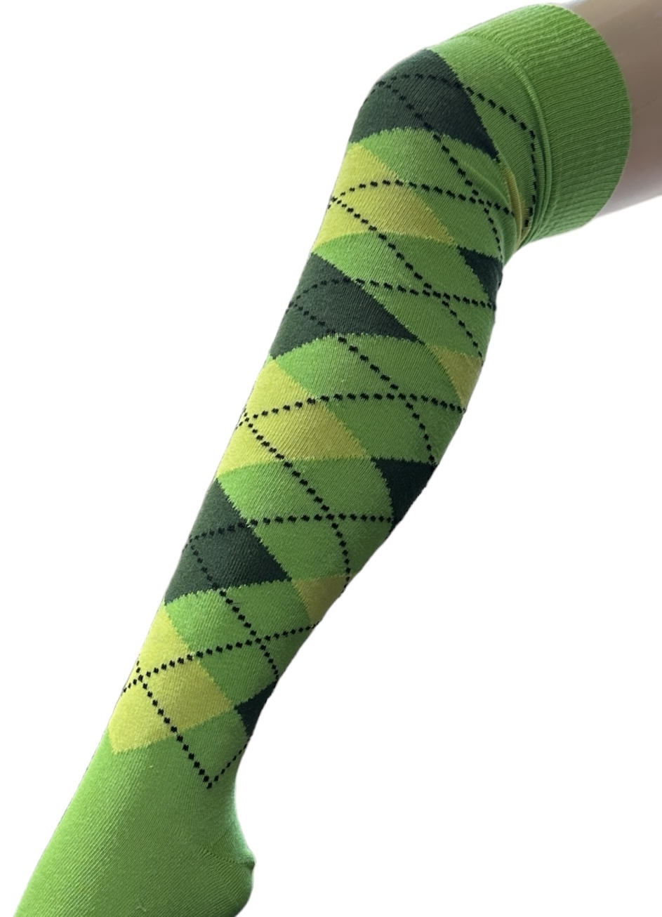 Pitkät sukat 38/41, Vihreä ruutu. Ruutu-kuvioidut pitkät sukat. Sukan koko 38/41. Materiaali 80 % puuvillaa, 15 % polyamidia ja 5 % elastaania. HUOM ! Sukan pituus kantapäästä varren yläreunaan 50 cm venyttämättömänä. Mitta lyhenee säären ympäryksen mukaan.