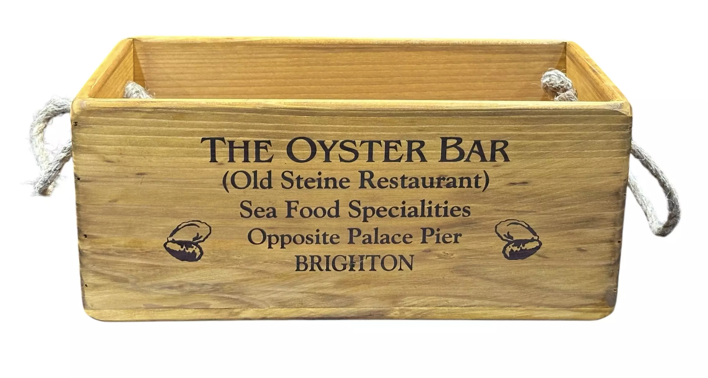 Puinen laatikko köysikahvoilla. M- Laatikon koko 30 x 13 x 15 cm. Samaa sarjaa on saatavilla viittä eri kokoa.