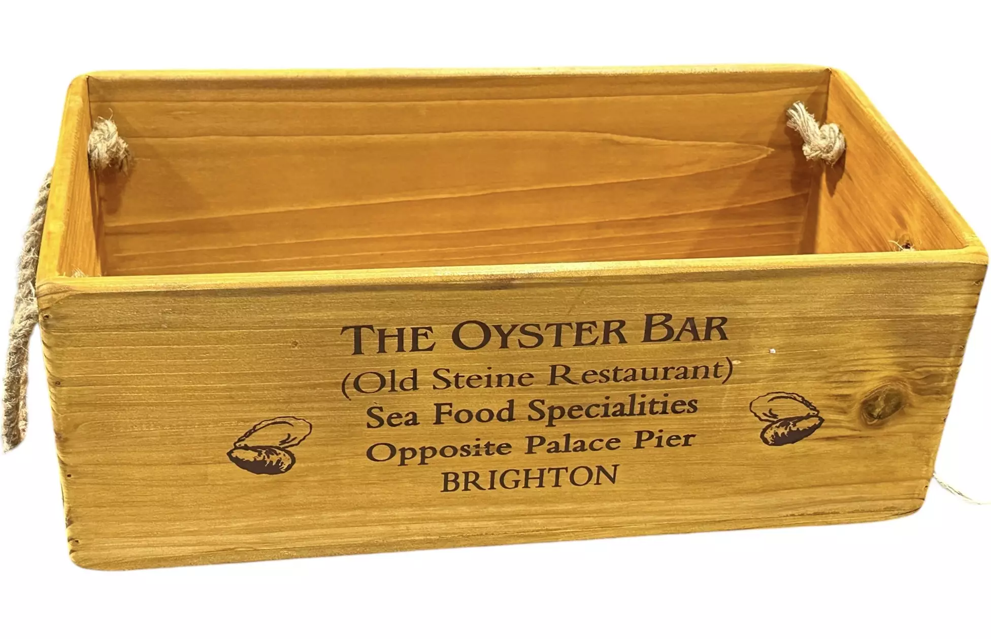 Puinen laatikko köysikahvoilla. XL- Laatikon mitat 40 x 15 x 20,5 cm. Samaa sarjaa on saatavilla viittä eri kokoa.