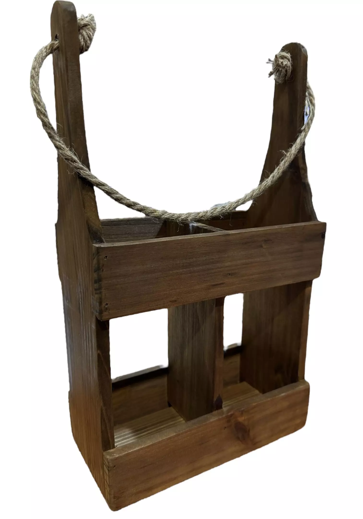Puinen pulloteline kahdelle pullolle. Telineen mitat 21x36x11cm.