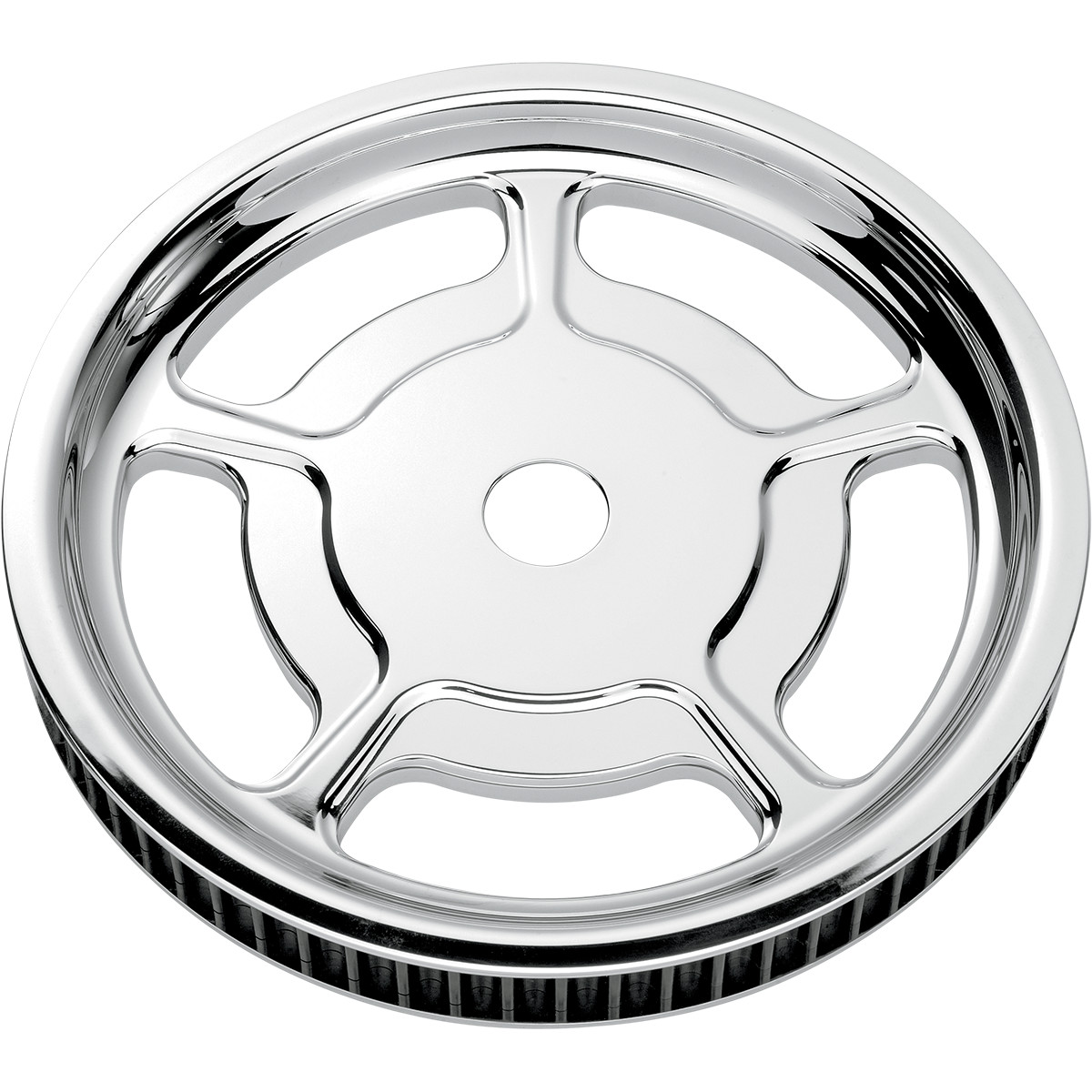 Universal Rear Cush-drive Aluminum Pulley CNC-machined aluminum construction Precision-shaped 68-tooth profile is designed to fit belt perfectly Available in chrome or Contrast Cut™ finishes... Lue lisää