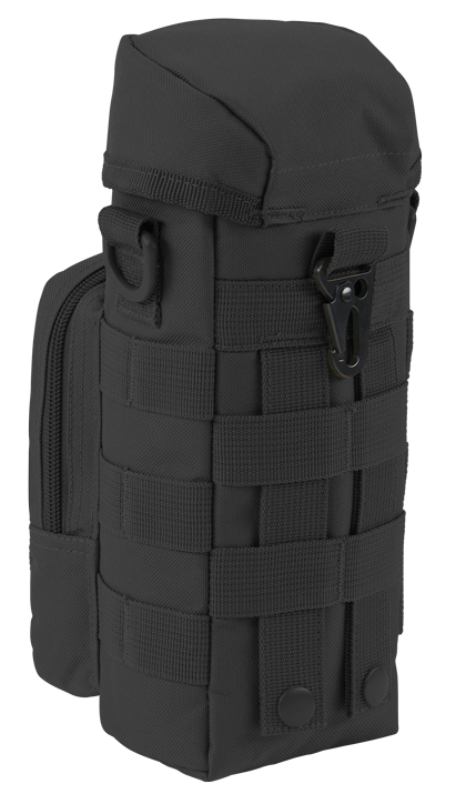 Pullolaukku reilulla sivutaskulla, jossa sisällä verkkotasku.Olkahihna pikalukoilla ja säädöllä. Musta.