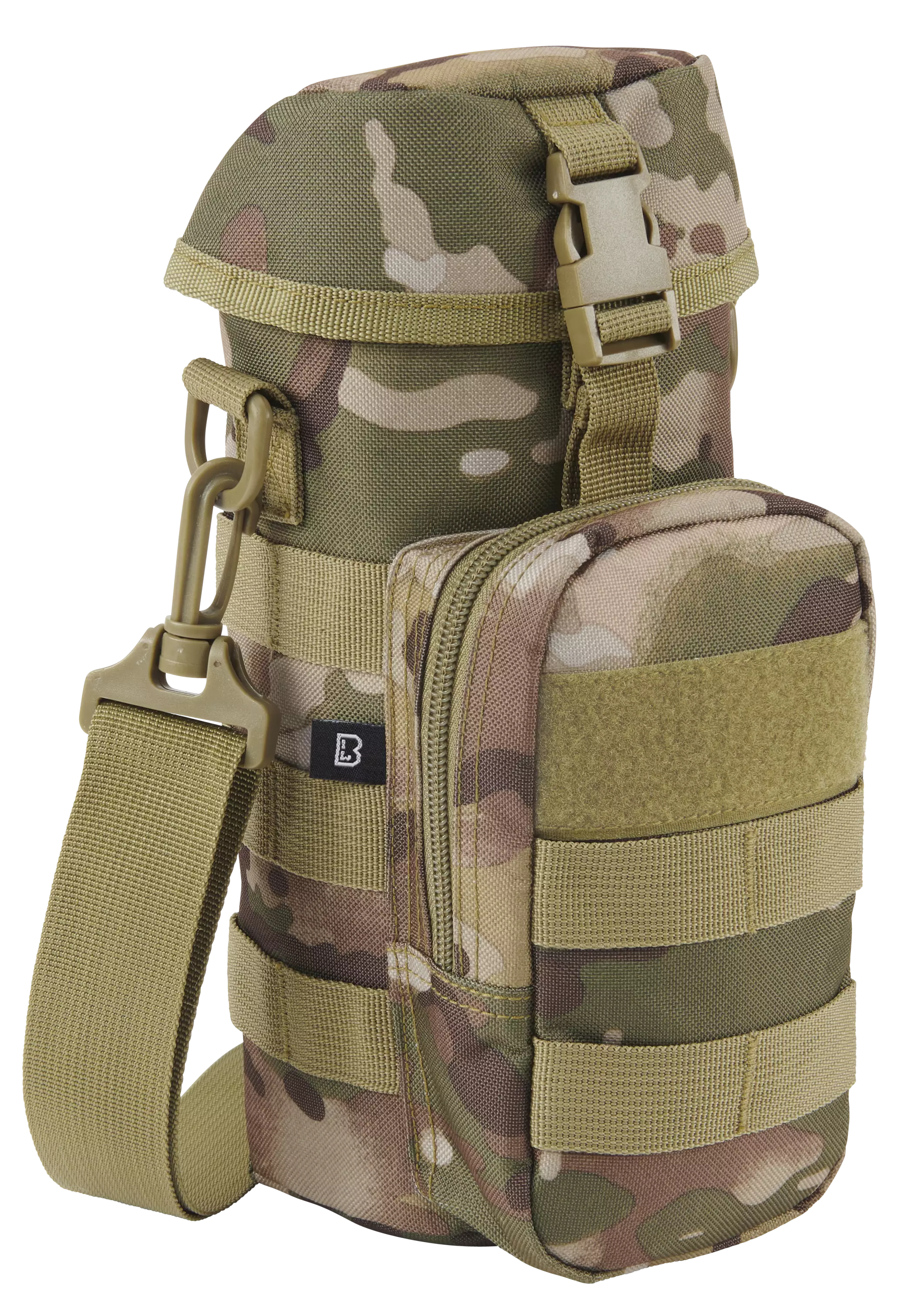 Pullolaukku Tactical Camo, puhelin-/lompakkotaskulla. Pullolaukku vetskallisella sivutaskulla, jossa sisällä verkkotasku. Irroitettava, säädettävä olkahihna pikalukolla.