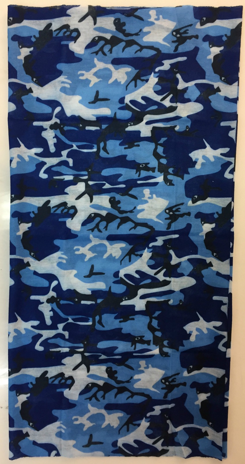 Putkihuivi, Camokuviot silmillä, sininen on monikäyttöinen ja myötäilevä asuste. Voidaan käyttää mm. kaulahuivina, pipona, otsapantana ja toppina. Erinomainen myös moottoripyöräily varustuksena. Materiaali 100 % polyesteria, pesu 40 asteessa.
