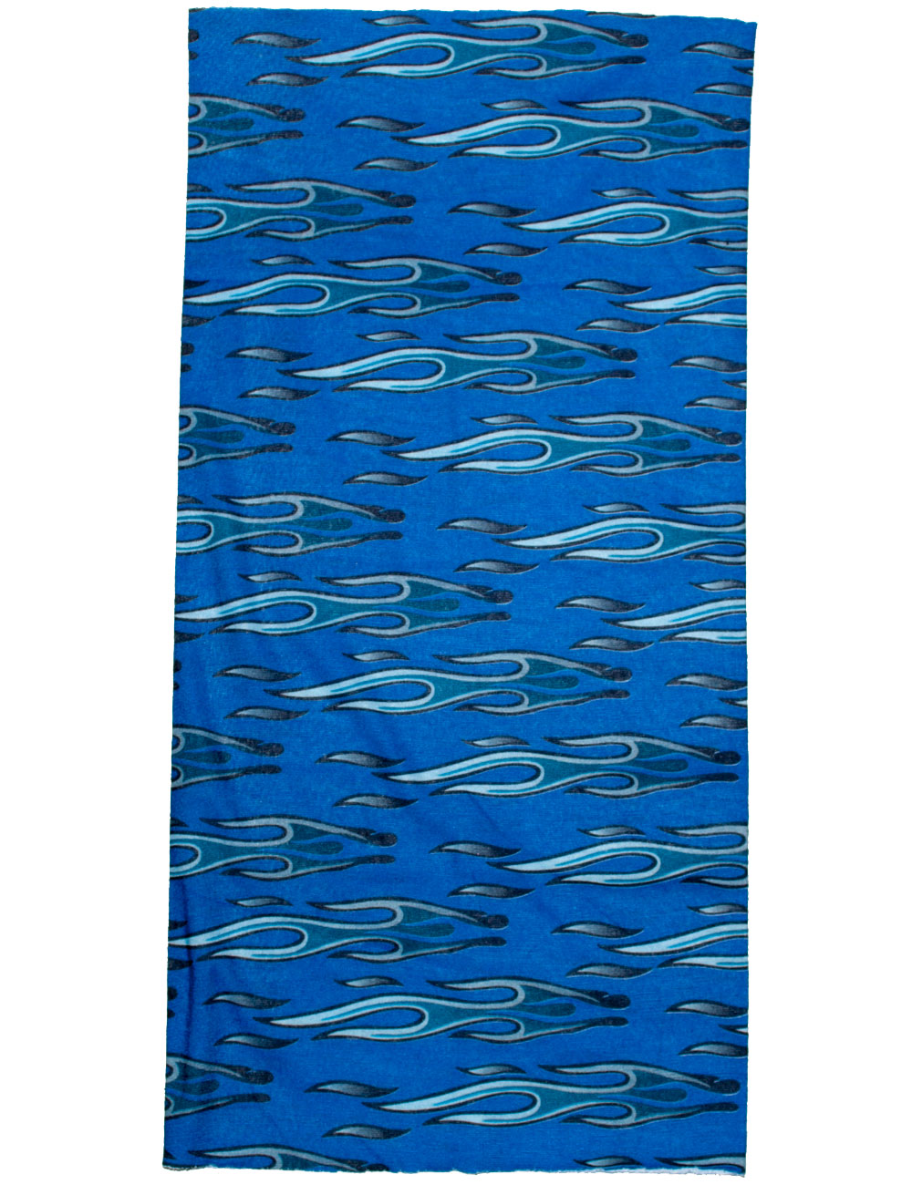 Putkihuivi, sininen, liekit, on monikäyttöinen ja myötäilevä asuste. Voidaan käyttää mm. kaulahuivina, pipona, otsapantana ja toppina. Erinomainen myös moottoripyöräily varustuksena. Materiaali 100 % polyesteria, pesu 40 asteessa.