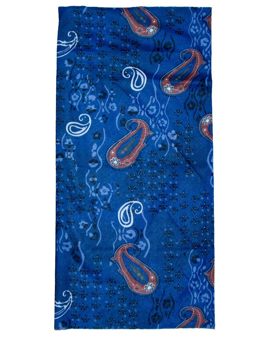 Putkihuivi, sininen, ruskea kashmir kuvio, on monikäyttöinen ja myötäilevä asuste. Voidaan käyttää mm. kaulahuivina, pipona, otsapantana ja toppina. Erinomainen myös moottoripyöräily varustuksena. 100 % polyesteria, pesu 40 asteessa.