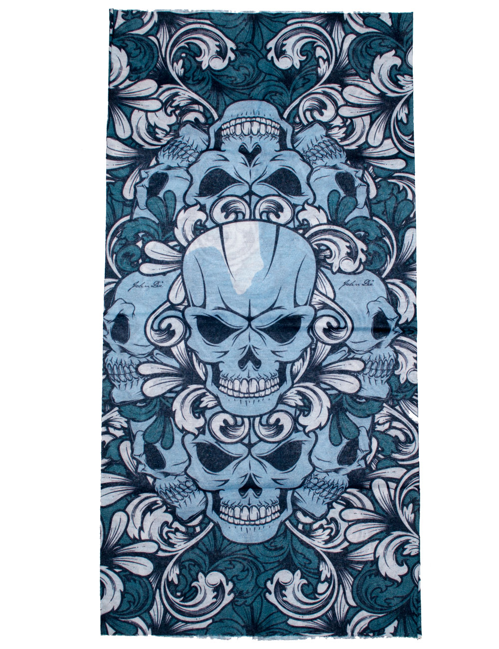 Putkihuivi, vihreä, siniset kallot, on monikäyttöinen ja myötäilevä asuste. Voidaan käyttää mm. kaulahuivina, pipona, otsapantana ja toppina. Erinomainen myös moottoripyöräily varustuksena. Materiaali 100 % polyesteria, pesu 40 asteessa.