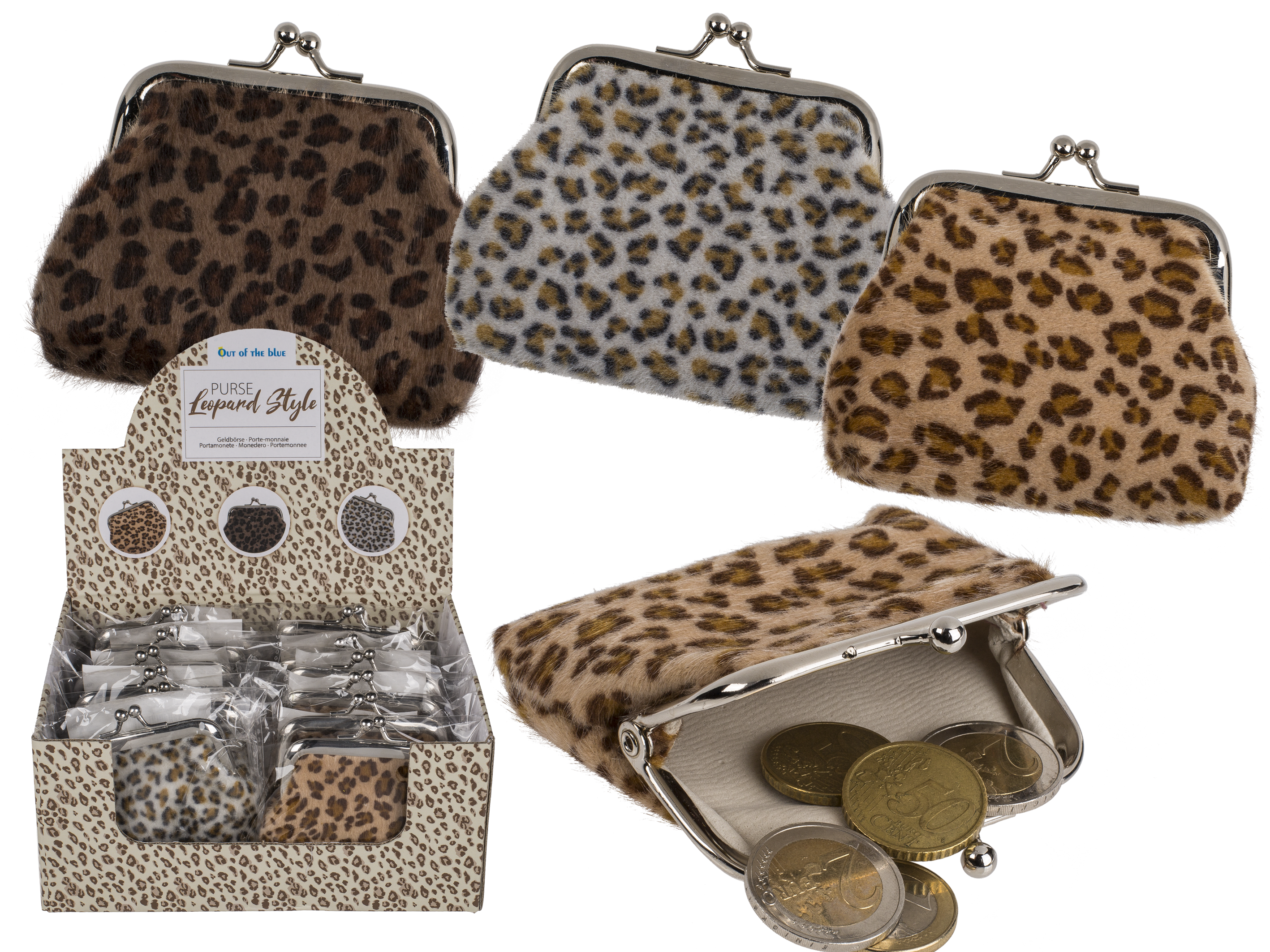 Rahakukkaro, Leopardikuosi. Kolmessa eri sävyssä ihastuttava pieni kolikkokukkaro. Koko 10 x 9 cm.