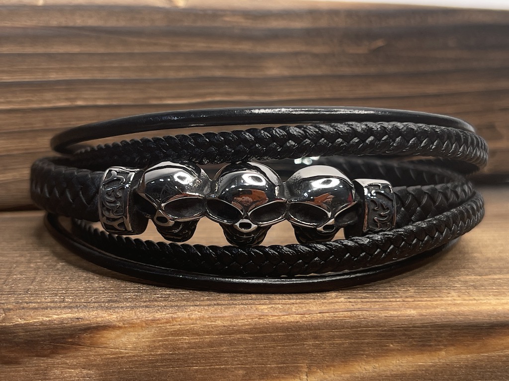 Rannekoru teräsrannekoru 3-pääkalloa kirurginterästä Punotut pvc hihnat 215mm pituus