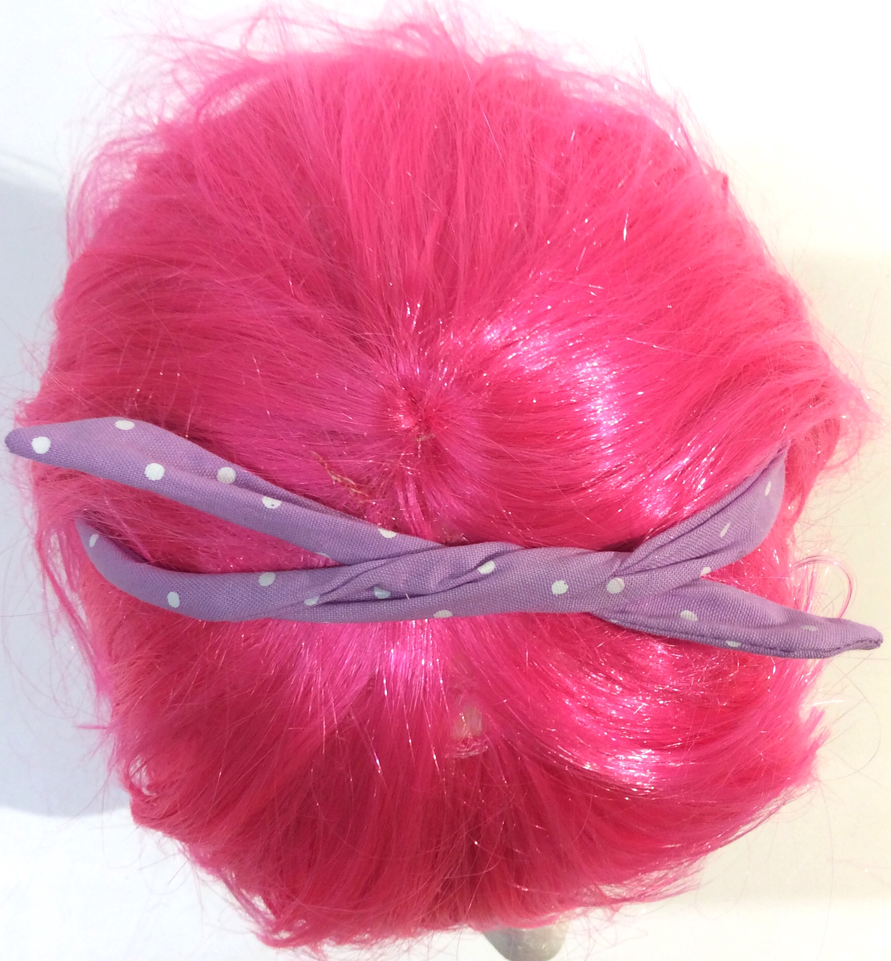 Rautalankahuivi, Polka Dot, lila. Huivin pituus 78 cm ja leveys 2 cm. Huivin sisällä rautalanka, joten se on helppo asetella ja pysyy paremmin paikoillaan.