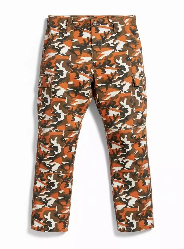 Reisitaskuhousut, Orange Camo. Housuissa rento istuvuus, polvissa on muotolaskokset sivuissa antamaan tilaa luontaiselle liikkeelle. Tilavien sivutaskujen lisäksi housuissa on reilunkokoiset reisitaskut molemmissa lahkeissa. Reisitaskut suljetaan piilonapitetuilla kansiläpillä. Läpässä on kaksi nappia, joten tavarat eivät pääse putoamaan. Myös molemmissa takataskuissa on piilonapituskansiläpät kahdella napilla. Takamuksessa on kaareva vahvikepala, joten kaksinkertaisena se kestää myös paremmin kulutusta. Housun vyötäröllä on seitsemän 20 mm leveää vyölenkkiä, ja lenkkeihin menisi jopa reilu 60 mm leveä vyö. Vyötäröllä on lisäksi kaksi säätöremmiä soljilla, joilla voi myös säätää housun vyötärön väljyyttä. Lahkeensuiden leveyttä voi säätää lahkeessa olevilla nyörillä.